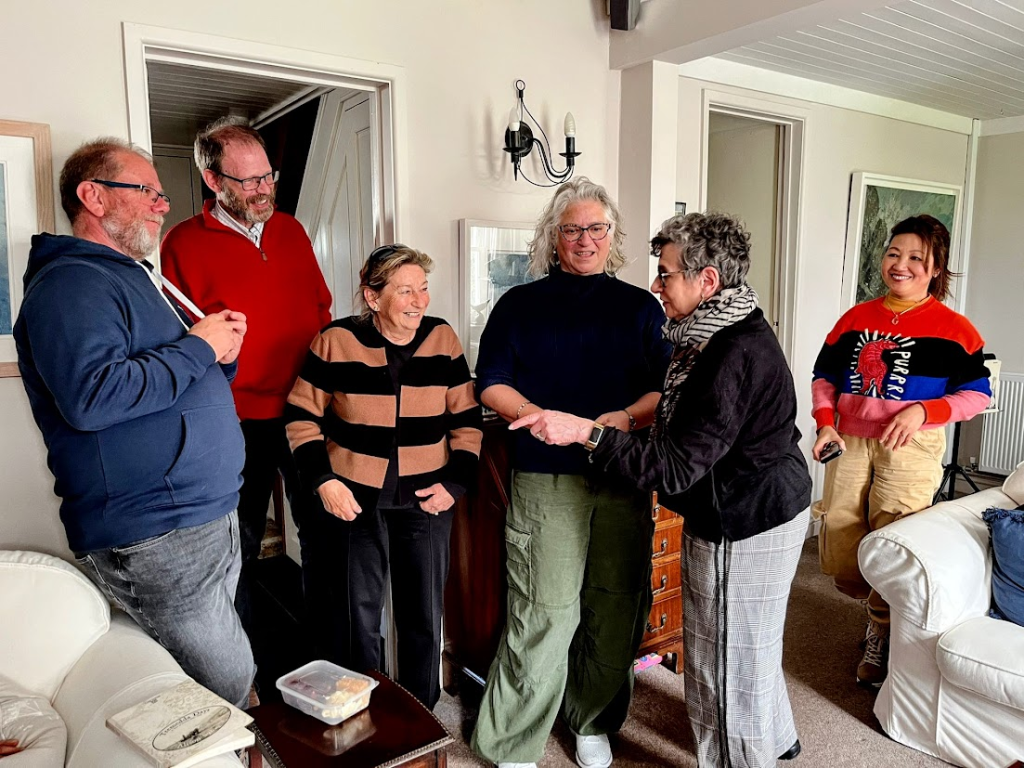 It was great to see so many members and friends turn up at Harvey and Jacqueline’s lovely cottage in Penponds on Saturday afternoon (April 11th) to celebrate the 25th anniversary of Kehillat Kernow. There was a wonderful spread of sandwiches, cakes and pastries – thank you Jacqueline and everyone involved – and there was a raffle of two of Harvey’s paintings with the £174.00 raised going to one of his favourite charities. There were lots of interesting conversations and we even had a sing-a-long listening to a CD of Harvey – who has a beautiful voice – singing Hebrew songs (Yerushalayim Shel Zahav/Jerusalem the Golden and Shalom Aleichem). A really delightful afternoon and a great sense of community.