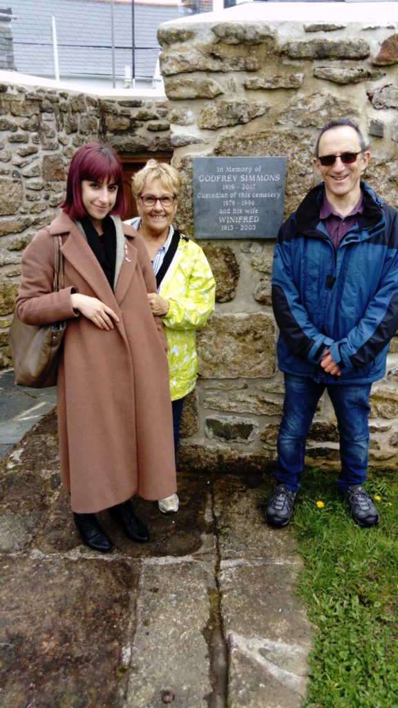 News Godfrey and Winifred Simmons’ Plaque 2nd April, 2018 Leslie LipertOn 2nd April, Godfrey and Winifred Simmons’ son, Bernard, together with his wife, Barbara and daughter Rachael came to Penzance from Bristol to see the recently installed memorial plaque. Share article Dayenu!All articlesNewsletter for April 2018