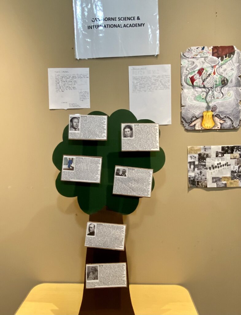 Torpoint Community College has told a distinctive story for Holocaust Memorial Day by mounting a moving project based on the life of Leon Greenman, a renowned Holocaust survivor and anti-fascist activist. Callington Community College and Camborne Science & International Academy have also mounted creative exhibitions.