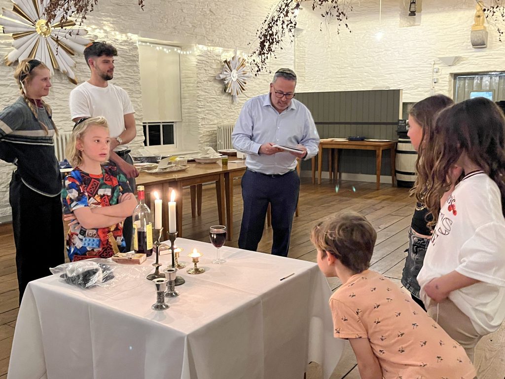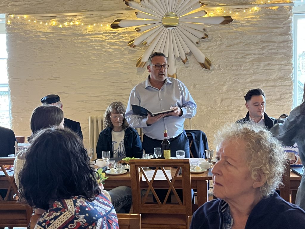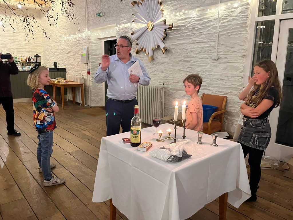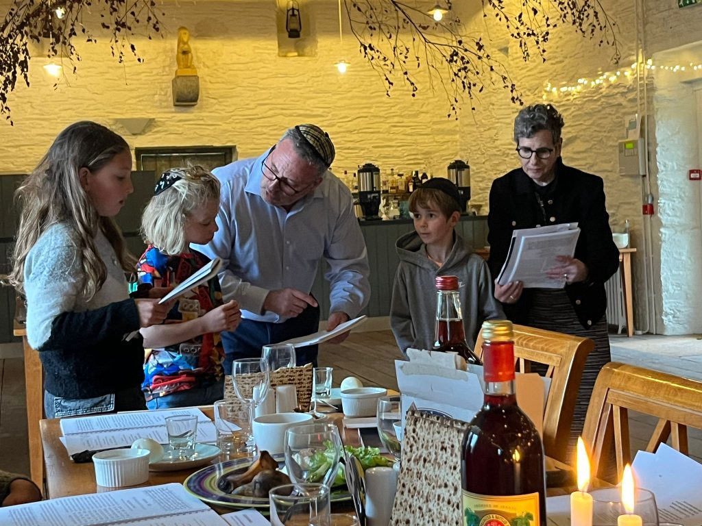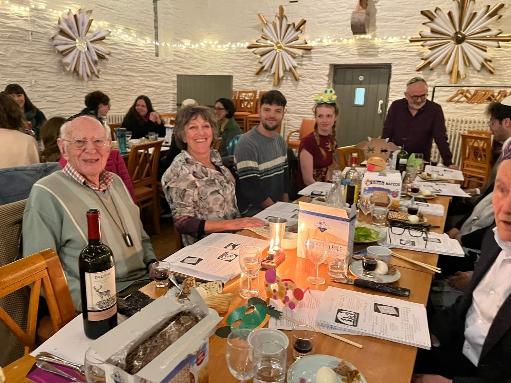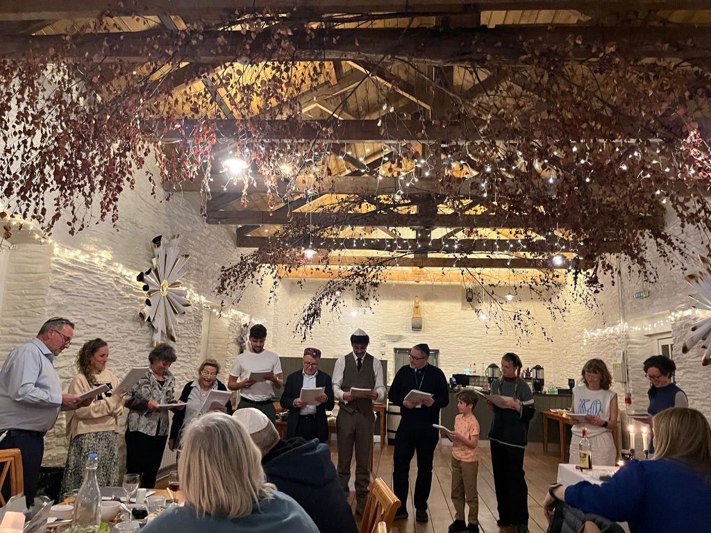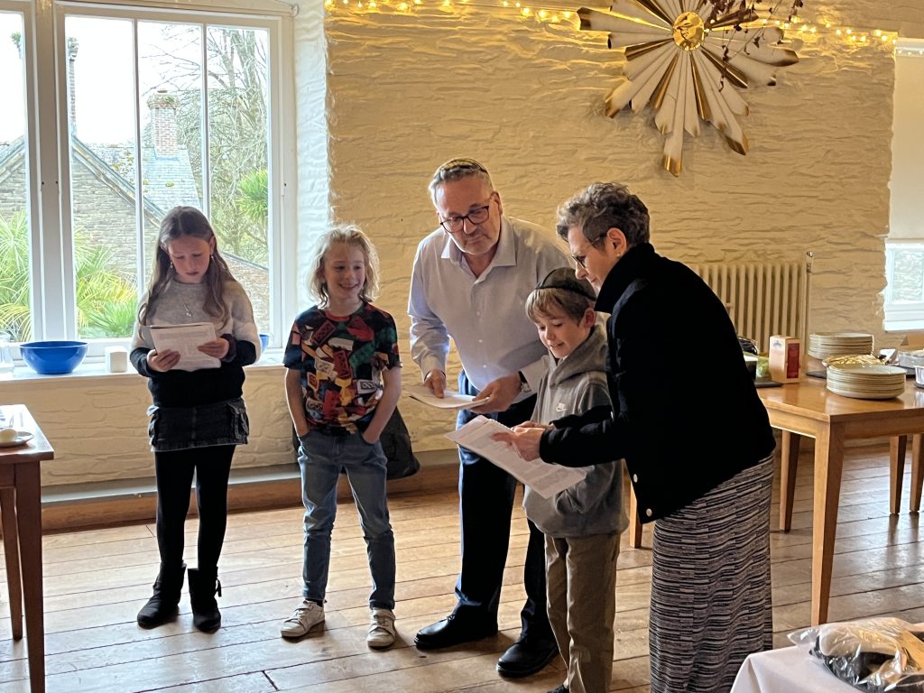 Once again, 40 members, friends and guests gathered at the beautiful Barn Restaurant at Trelissick to celebrate the first Seder Night of Pesach. We were honoured to have as special guests Sir Edward Bolitho, the Lord Lieutenant of Cornwall and three members of the Devon and Cornwall Police who have been very supportive of the community. It was great to see new members and friends alongside those who have attended for a number of years and it was wonderful to have a number of young children attending. As the Seder is very focused on children and telling them the story of the Exodus from Egypt, Adam Feldman – who led the Seder with great skill and enthusiasm – made sure it they were engaged right through the evening even though, for some, it was way past their bedtime!