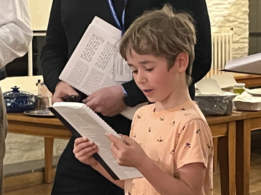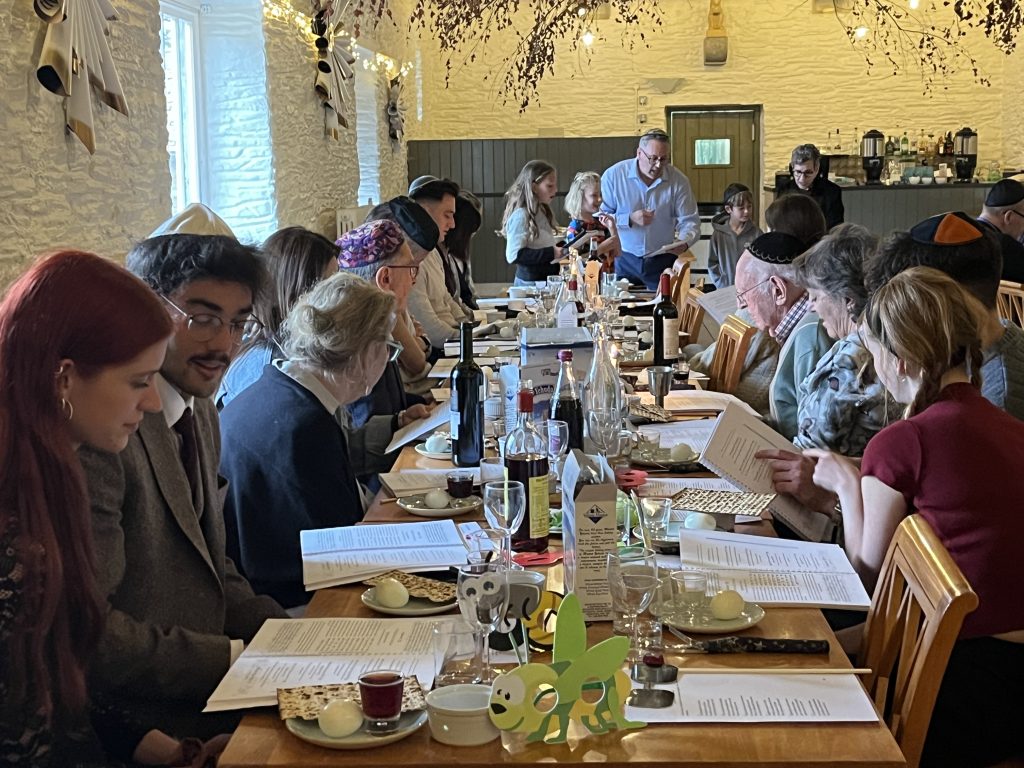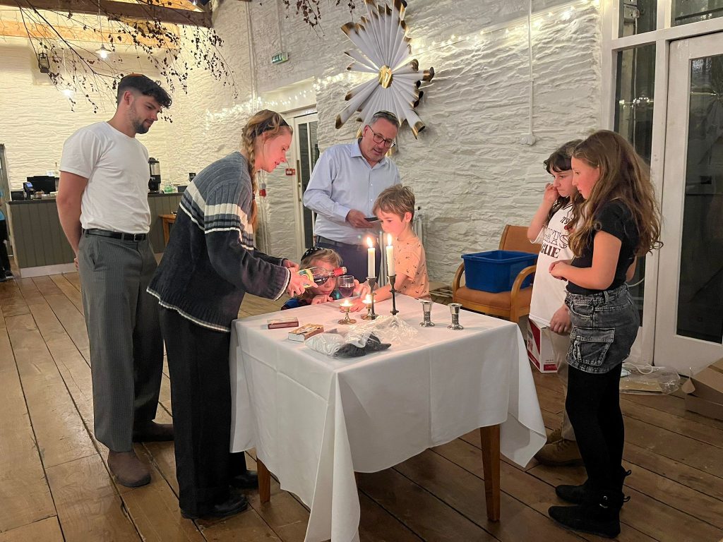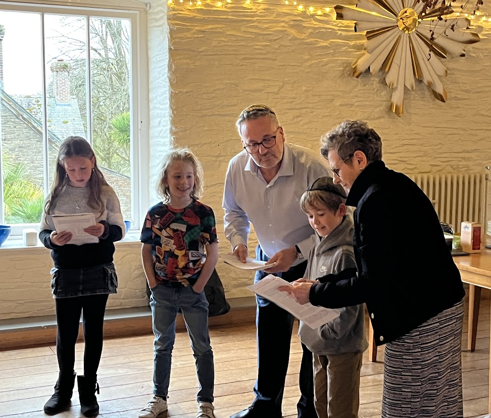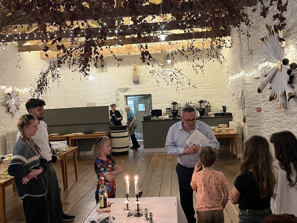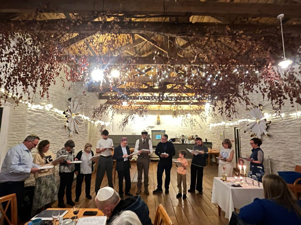 Once again, 40 members, friends and guests gathered at the beautiful Barn Restaurant at Trelissick to celebrate the first Seder Night of Pesach. We were honoured to have as special guests Sir Edward Bolitho, the Lord Lieutenant of Cornwall and three members of the Devon and Cornwall Police who have been very supportive of the community. It was great to see new members and friends alongside those who have attended for a number of years and it was wonderful to have a number of young children attending. As the Seder is very focused on children and telling them the story of the Exodus from Egypt, Adam Feldman – who led the Seder with great skill and enthusiasm – made sure it they were engaged right through the evening even though, for some, it was way past their bedtime!