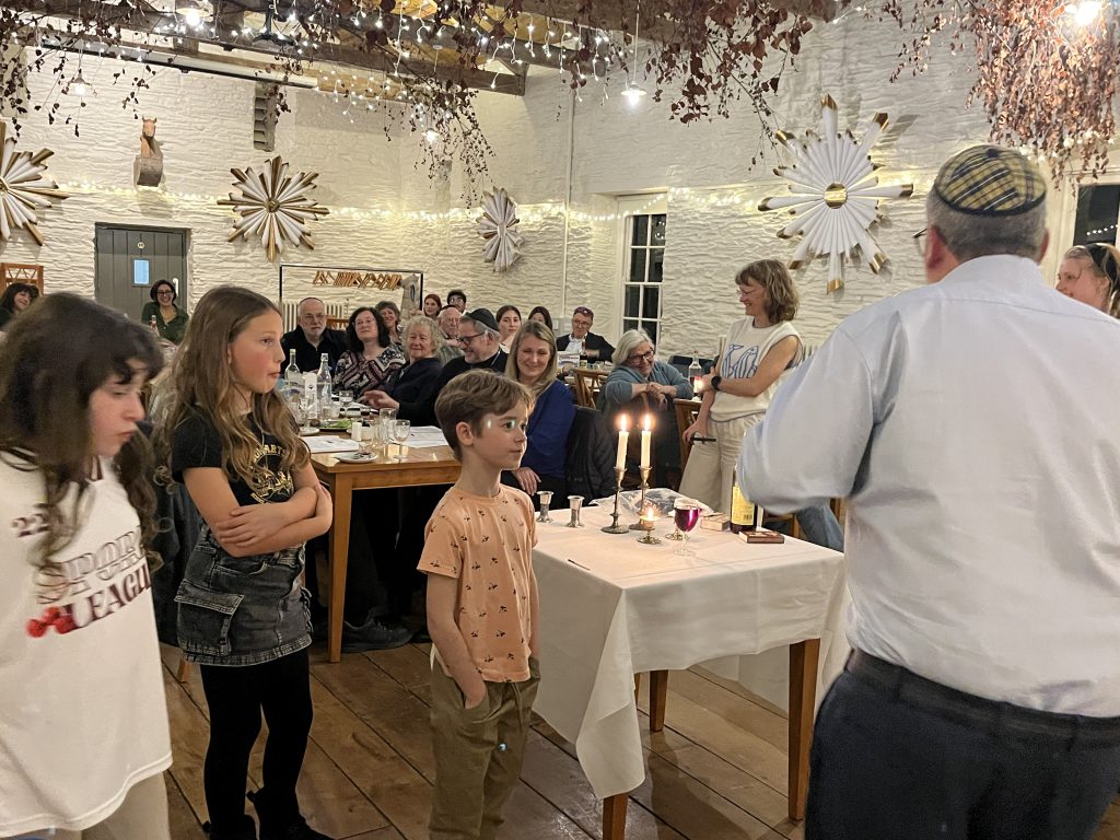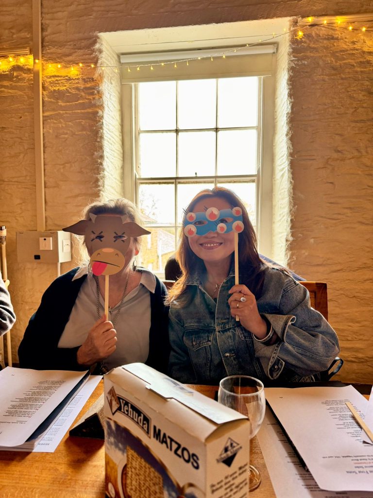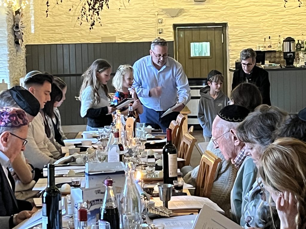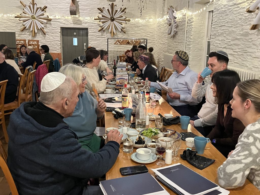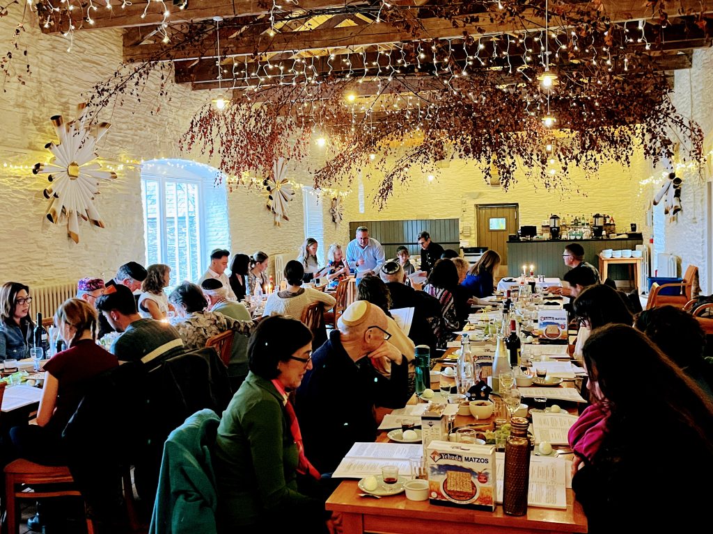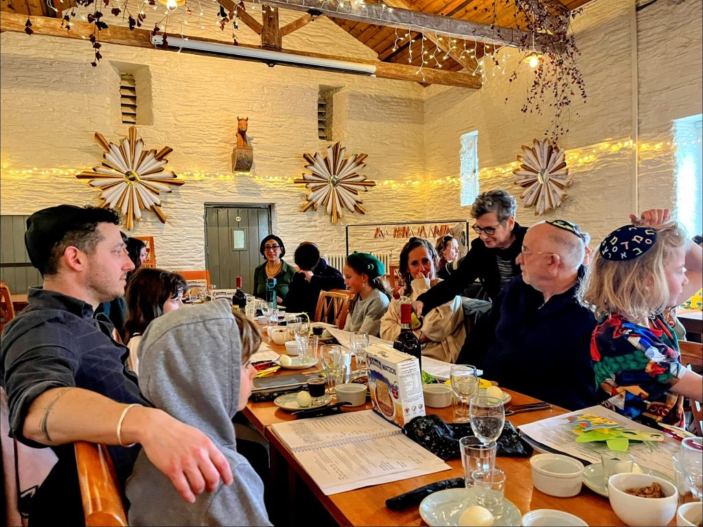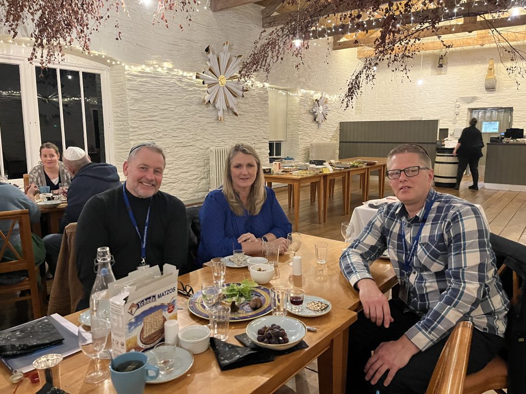 Once again, 40 members, friends and guests gathered at the beautiful Barn Restaurant at Trelissick to celebrate the first Seder Night of Pesach. We were honoured to have as special guests Sir Edward Bolitho, the Lord Lieutenant of Cornwall and three members of the Devon and Cornwall Police who have been very supportive of the community. It was great to see new members and friends alongside those who have attended for a number of years and it was wonderful to have a number of young children attending. As the Seder is very focused on children and telling them the story of the Exodus from Egypt, Adam Feldman – who led the Seder with great skill and enthusiasm – made sure it they were engaged right through the evening even though, for some, it was way past their bedtime!