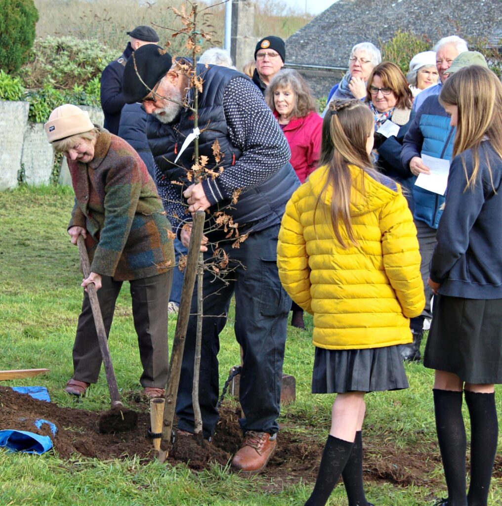 The tree was planted by another Kehillat Kernow member, David Hearle, with help provided by children from Mousehole School. One Mousehole resident, Melvia Williams, who remembered the Jewish children’s arrival ‘as if it was yesterday’ attended the ceremony and spoke of a warm coming together of the two groups of children. Besides the tree planting itself, the ceremony included welcome speeches by CFF Head and Priest in Charge at Paul Church Andrew Yates and by Kehillat Kernow Chair Jeremy Jacobson, talks by AJR representative (and coincidentally KKehillat Kernow member) Dr Bea Lewkowicz and by Susan Soyinka, plus the recital of Psalm 104 by everyone, a moving rendition of El Malei Rachamim by Kehillat Kernow Vice-Chair Adam Feldman and, finally, the Priestly Blessing recited in Hebrew by Adam and in English by Andrew.